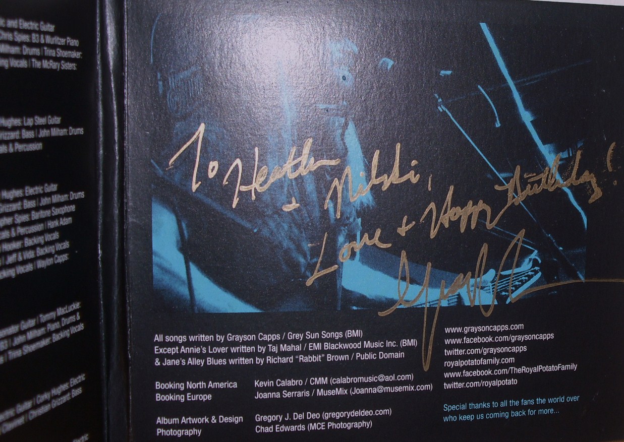 Beyond his talent and the talent of the band, they are good guys to boot. Check out this signed CD case from Grayson.