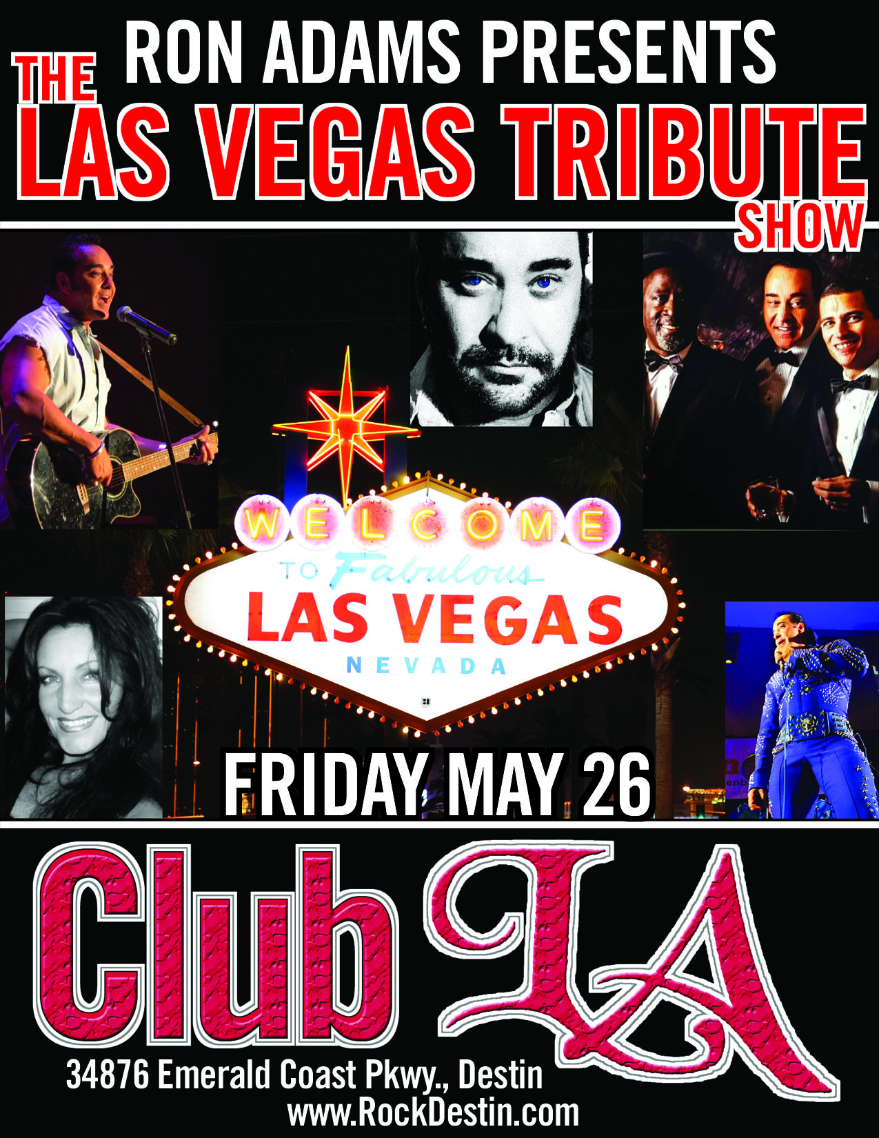 On Friday May 26th, Ron Adams Entertainment Presents ‘The Las Vegas Tribute Show’ at Club L.A. Destin.