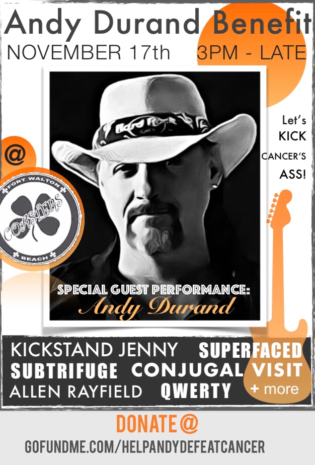 The Andy Durand Cancer Benefit will take place Saturday, November 17th at Coasters in Downtown Fort Walton Beach. (3pm-Late)