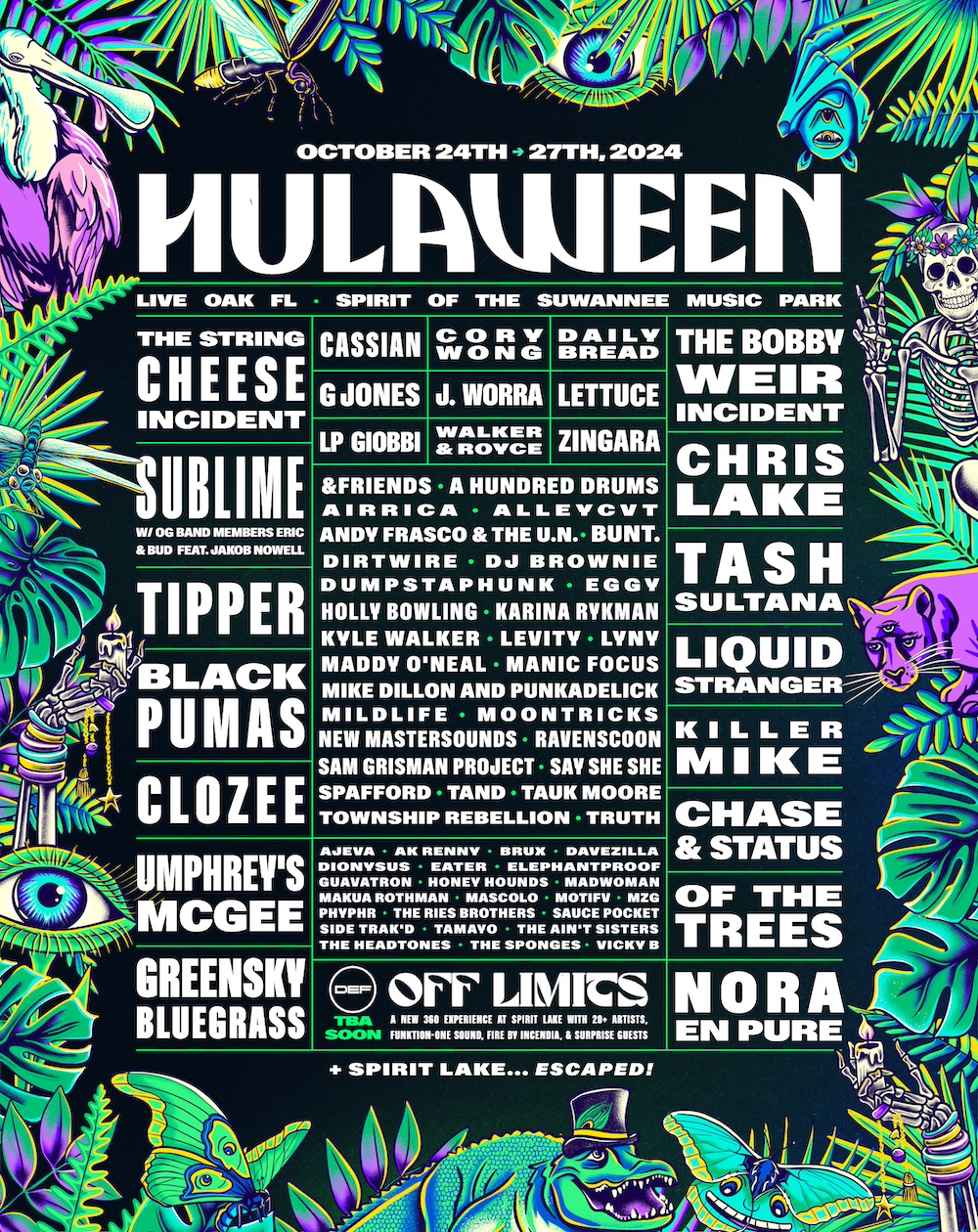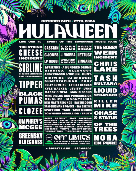 Following the historic sold-out 10th anniversary in 2023, Suwannee Hulaween has just announced its monster, multi-genre lineup for the 11th annual edition, returning home to the Spirit of the Suwannee Music Park in Live Oak, Florida from Thursday, October 24 – Sunday, October 27, 2024.