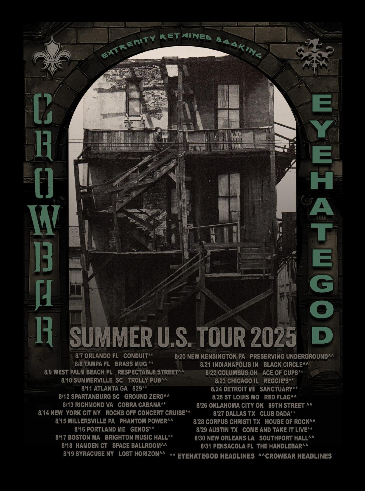 The journey will commence on August 7th in Orlando, Florida and close on August 31st in Pensacola, Florida. The tour includes a performance on the Rocks Off Concert Cruise in New York City. In October, CROWBAR will perform on Lamb Of God’s Headbangers Boat.